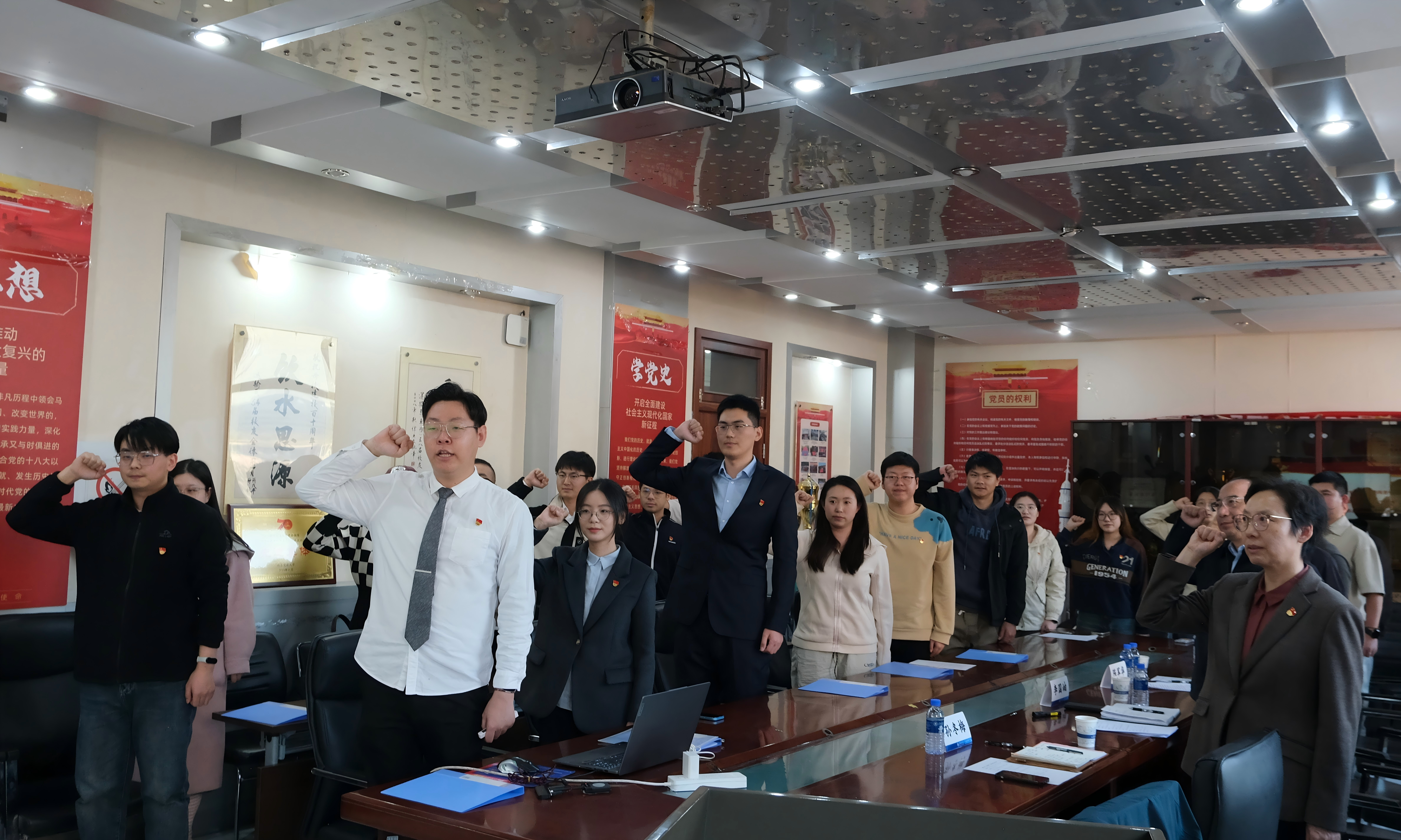 新发展预备党员庄严宣誓。新发展预备党员代表王丁宁分享入党初心,表达了投身新时代伟大事业、争做堪当民族复兴重任时代青年的坚定决心。