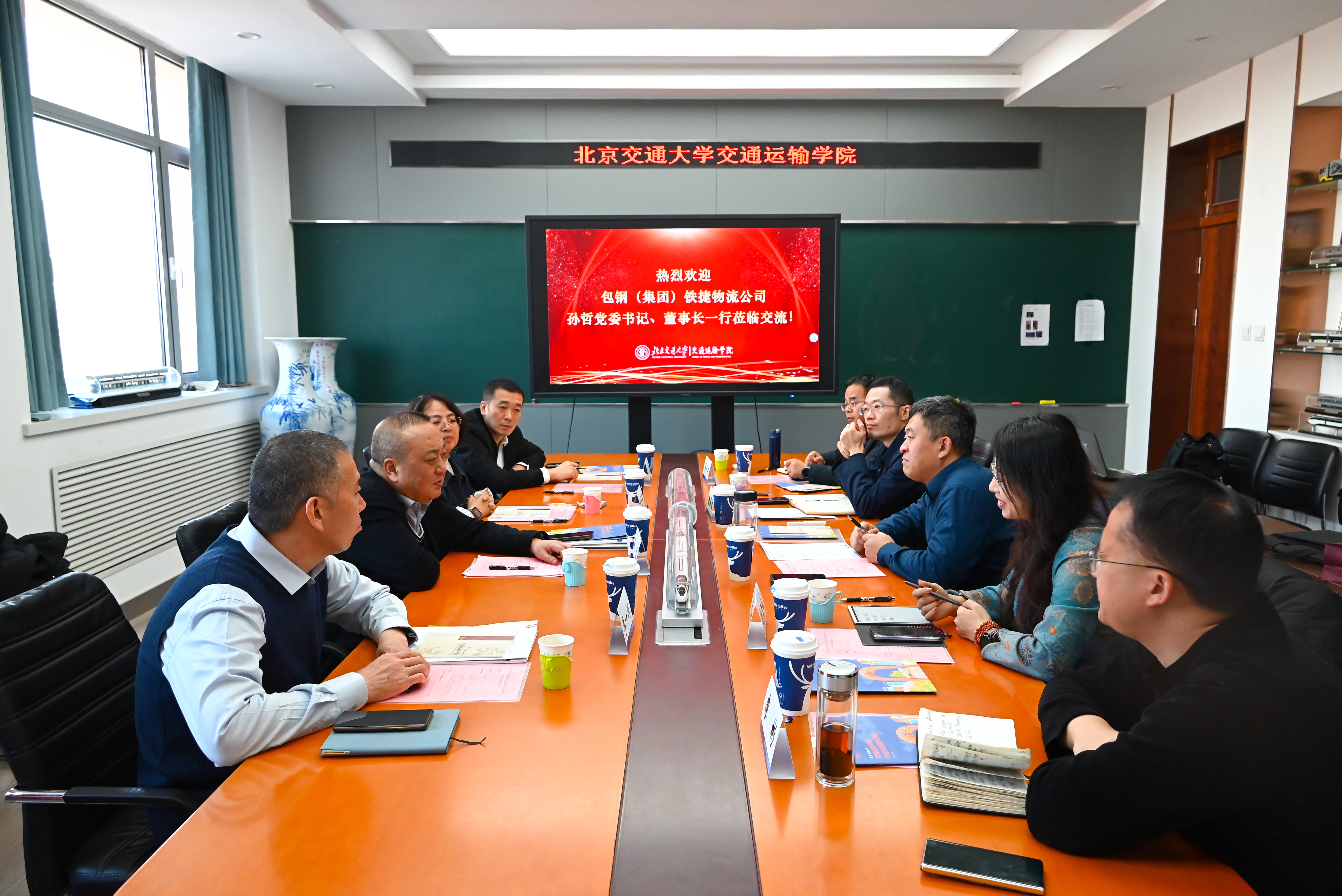 2025年12月11日上午,学院与包头钢铁(集团)铁捷物流有限公司(以下简称“包钢铁捷物流公司”)产学研合作签约仪式,在免费av影片 第八教学楼8617会议室顺利举行。包钢(集团)公司总经理助理、包钢铁捷物流公司党委书记、董事长孙哲,副总经理刘惠军,技术专家李一川,技术主管李君;免费av影片 院长孟令云,副院长唐源洁,信息系党支部书记沈孟如,交通工程系副主任吴先宇,校友总会物流分会秘书长廖彬等双方代表出席活动。仪式由唐源洁副院长主持。